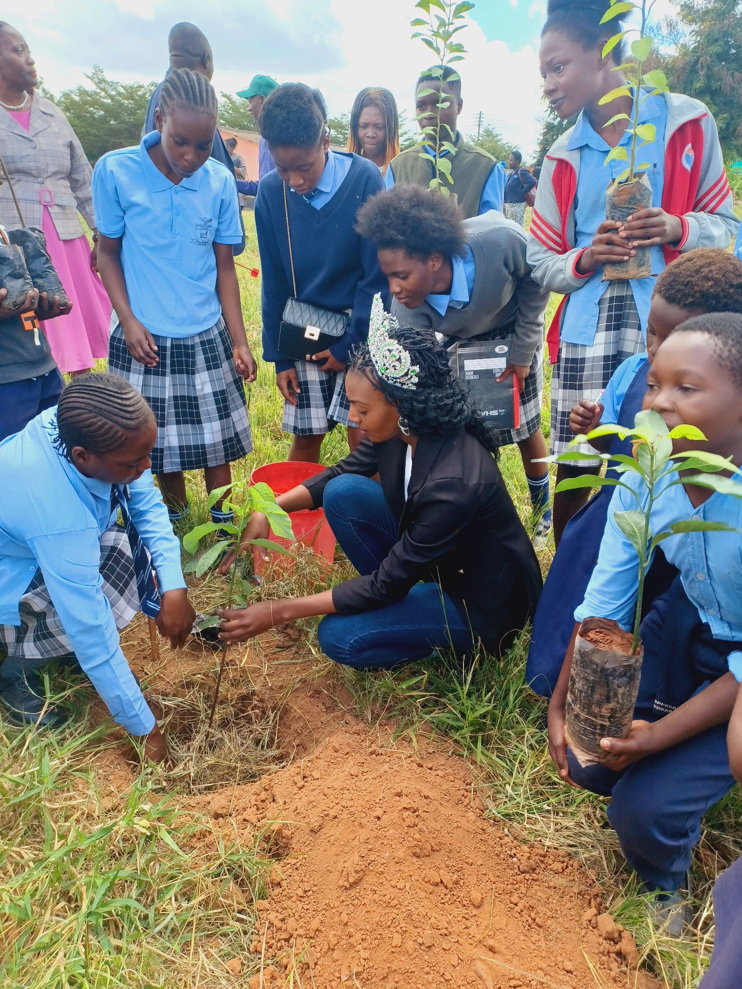 We took this task on with asked Miss Earth to come along and speak to the school children at Munkolo School in Lusaka. When given the chance to grow and mature, trees contribute immeasurably to the environment and society. Some of their key long-term benefits include: